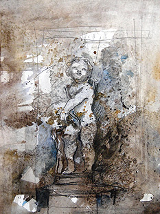 Tempelgarten III, Aquarell, 20 x 30 cm